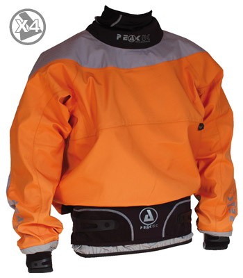Articulated cut with bent elbows. Fully taped seams. Breathable and durable X4 heavy duty fabric with 30m waterproofing, Cordura shoulders and elbows. Very Tough. Latex inner neck with opening neoprene outer cone. Latex inner wrists with opening neoprene outer. Neoprene AO3 outer waist seal with elastic bound X4 inner. Stylish and functional mesh drainage system between neck seals. Option of adding high impact resistant elbow, shoulder and back pads for extreme creeking action.