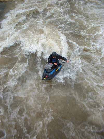 This spot is a wave and a hole. If the water level is high you will get a fast wave and at low water level it becomes a hole (warning: at low levels there are some rocks just after the hole, so so take care of your head). There is just one eddie on the river right side. This means you have to put in upstream and paddel down to the eddie. once in the eddie you can choose. Go right in the wave or go left in the other wave (not always good). The take out is just a bit downstream on the left side.