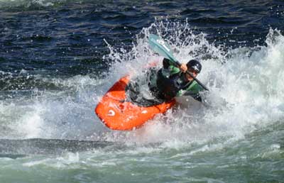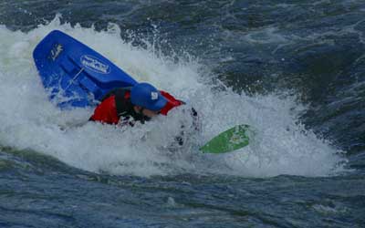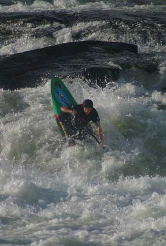 Named this by the rafting companies for obvious reasons. It has hold swimmers and given some kayakers a real beating so unless you know what you are doing stay away. However some nice moves have been pulled here! Stay well away in high water (around 80 is best).
