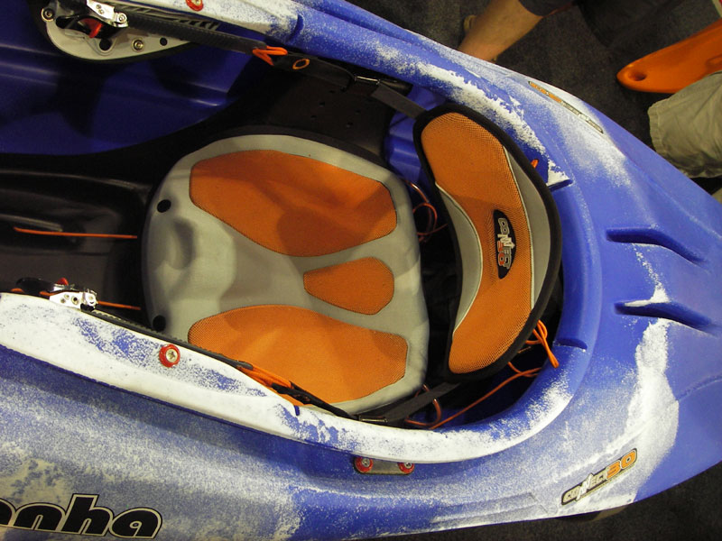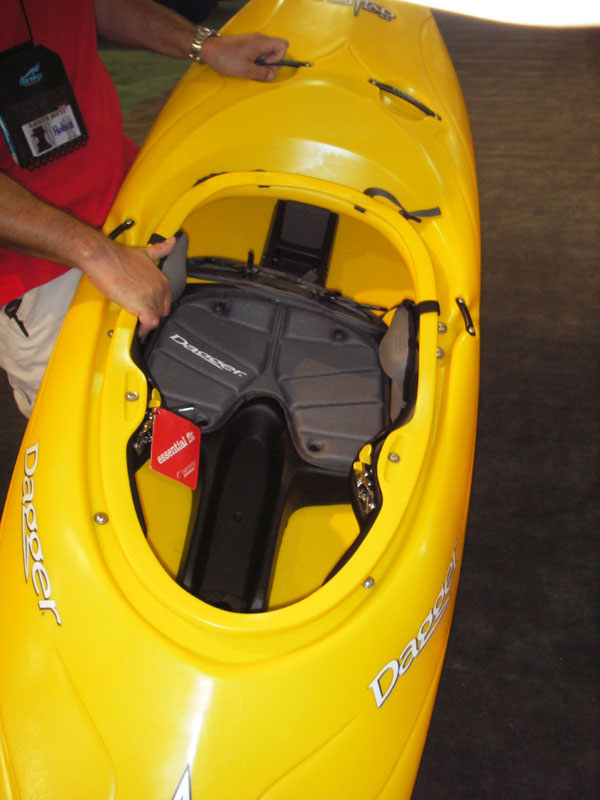 Take the aeriability for which Dagger is known and make it comfortable enough to actually sit in for extended periods of time and you have the basic thrust of The Dagger Agent. There's a shot of me in here sitting in one, but what you can't see is that I'm still wearing my Adidas Sambas under that deck, and still quite comfortable. That's impressive for me as someone who is almost always too long-legged for the proper boat size. Mark "Snowy" Robertson has added a unique double-concave rail to the hull that should make this one very loose kayak indeed. So, more power to them.