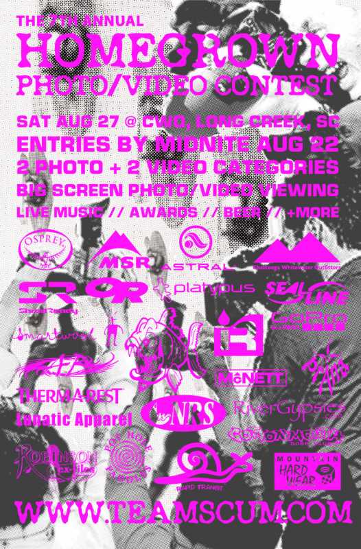 Osprey, MSR, Astral, Chattooga Whitewater Outfitters, Shred Ready, Outdoor Research, Platypus, Seal Line, GoPro, Smartwool, Pyranha, Immersion Research, Aquabound Paddles, Thermarest, McNett, prAna, Lunatic Apparel, NRS, The River Gypsies, Robinson Ex-Files, PotHole Paddles, Rapid Transit Video, Cottonmouth Nose Plugs, Mountain Hardwear, Stonyboater PaddleWax, SolGear, and of course teamscum